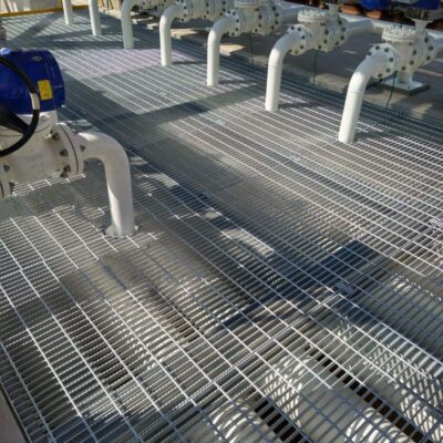 Escalones, malla mesh, rejilla elecroforjada y rejilla de fibra de vidrio